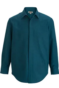 This shirt features Scotchgard soil-release, wrinkle resistance, and moisture-wicking to keep staff dry and presentable. Two-button adjustable cuffs and a straight back yoke seam reinforce a streamlined, uniform-ready silhouette, and the pocket-free front accepts embroidery cleanly. Available in versatile colors, this Edwards café shirt is a practical formal shirt and work shirt built for hospitality teams.