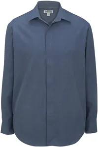 The Edwards 1291 Café Batiste is a tailored long-sleeve button-up that balances polish with real comfort, sharp enough for the front desk and soft enough for long shifts. Made from 100% polyester at 3.5–3.75 ounces, the fabric shows a subtle weave and drapes smoothly without stiffness. A narrow cafe (point) collar and covered placket form a clean neckline that looks neat under aprons or blazers.