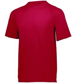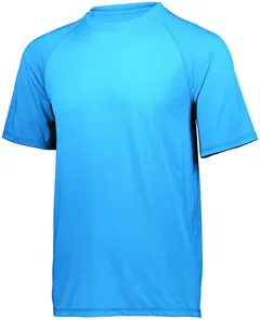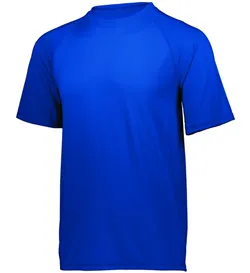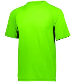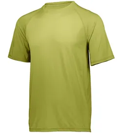 Dry-Excel™ 88% polyester/12% spandex knit with color secure® technology that helps prevent dye migration * Wicks Moisture * Tagless label * Raglan sleeves