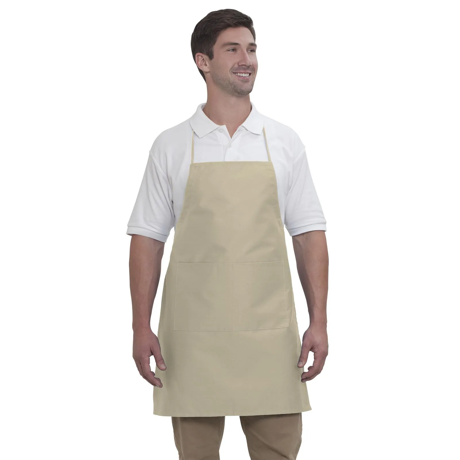 Our Full Length Apron provides two center pockets and a longer length for overall coverage. Featuring an adjustable neck and waist tie that is sure to make sizing a cinch.